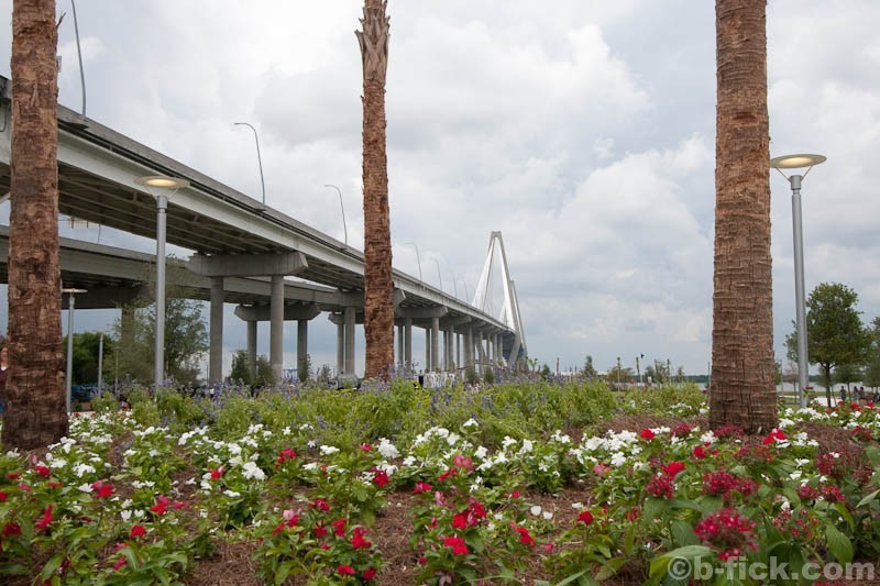 Memorial Waterfront Park is the new flagship park in the Charleston suburb of Mt. Pleasant. Located in the shadows of the newly completed Arthur Ravenel Jr. Bridge, the 22 acre park is home to the Mt. Pleasant Visitors Center and features public pavilions, open green space, a playground, war memorial and a 1250 foot long fishing pier. The park was designed by ADC Engineering and cost $14 million to build.